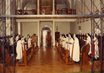 Description :1.1; VUE DES RELIGIEUSES DEBOUT TENANT UN LIVRE DE PRIERES A PARTIR DE L'ALLEE CENTRALE AVANT 1.2; GROUPE DE RELIGIEUSES AGENOUILLEES DANS LEUR CHAPELLE ET TOURNEES VERS LA DROITE 1.3; RELIGIEUSES AGENOUILLEES DANS LEUR CHAPELLE, TOURNEES VERS...