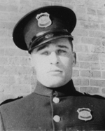 Description :VUE DU CADET POLICIER ALBERT BELL, INSIGNE 54, EN UNIFORME DE POLICIER, AVEC SA CASQUETTE