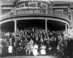 Description :A LA RESIDENCE TOBIN, A L'EXTERIEUR, UNE RECEPTION EST DONNEE EN L'HONNEUR DE SIR WILFRID LAURIER