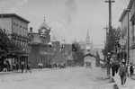Description :VUS SUR LES RUES MAPLE (AUJOURD'HUI FRONTENAC) ET DOLLARD DE LAC MEGANTIC OU DES ARCHES EN SAPIN ONT ETE AMENAGES