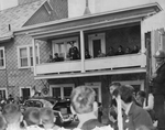 Description :VUE D'ALBERT BELL, CHEF DE POLICE D'ASBESTOS, S'ADRESSANT A LA FOULE DU HAUT D'UNE GALERIE. DES PERSONNALITES DIVERSES (MAIRE?, PRETRE, CHEF DE POMPIER?, POLICIER ETC... SONT ASSIS EN LIGNE DERRIERE LUI; EN BAS, LA FOULE, A QUI LE DISCOURS EST...