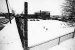 Description :MAGASIN D'ART JACQUES DARCHE DANS L'ANCIENNE ECOLE LAWRENCE VU DU BOUT DU TERRAIN, A L'ARRIERE GAUCHE DE L'EDIFICE. LA PHOTO EST PRISE EN HIVER. EN AVANT-PLAN ON VOIT UNE CLOTURE.