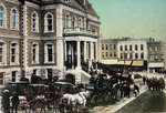 Description :VUE SUR LE PALAIS DE JUSTICE DE SHERBROOKE LORS DE SON INAUGURATION. UNE FOULE SE TIENT DANS L'ESCALIER ET DES VOITURES A CHEVAL ATTENDENT A L'AVANT