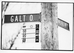 Description :GROS PLAN SUR UN POTEAU DE SIGNALISATION AVES LES NOMS DES RUES GALT ET MCMANAMY, AINSI QUE LA PANCARTE D'UN ARRET D'AUTOBUS AVEC SES HORAIRES.