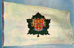 Description :SUGGESTION DE DRAPEAU POUR LE CANADA. SUR UN FOND BLANC, UNE FEUILLE D'ERABLE VERTE EST PLACEE EN PLEIN CENTRE. SUR LA FEUILLE, LES ARMOIRIES DES PROVINCES SURMONTEES D'UN CASTOR.