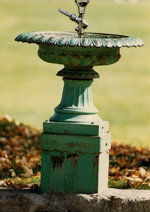 Description :VUE D'UN ABREUVOIR A LA VASQUE PEU PROFONDE ET AU LARGE REBORD DECORATIF DONT L'ENTRETIEN LAISSE MALHEUREUSEMENT A DESIRER