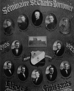 Description :PHOTO COMPORTANT AU CENTRE CELLE DU SEMINAIRE SAINT-CHARLES ET DES ARMOIRIES. TOUT AUTOUR SONT DISPOSES LES PHOTOS EN MEDAILLON DES AUTORITES ET DE QUELQUES PROFESSEURS AINSI QUE CELLES DES FINISSANTS. L'ANNEE D'ETUDE EST PRECISEE. ARTHUR OLI...