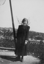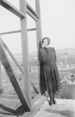 Description :2.1; VUE D'UNE ETUDIANTE EN UNIFORME DU COUVENT DEBOUT SUR LE TOIT DU BATIMENT OU SUR UNE HAUTEUR. DERRIERE ELLE, LA VILLE 2.2; VUE DE MLLE OLIVIER PHOTOGRAPHIEE SUR CE QUI SEMBLE ETRE LE TOIT DE L'EDIFICE