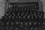 Description :PHOTO DE GROUPE D'EXTERIEUR D'UNE CENTAINE D'ETUDIANTS ET RELIGIEUX (ILS SONT A PEU PRES 6) DONT A PEU PRES LA MOITIE SONT ASSIS AUX DEUX PREMIERES RANGEES. A EN JUGER PAR L'AGE DES ETUDIANTS ET LE COSTUME DES RELIGIEUX, IL POURRAIT S'AGIR D'E...