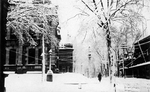 Description :ON VOIT LE COTE DU BUREAU DE POSTES ET A COTE L'EDIFICE DE LA STANSTEAD AND SHERBROOKE MUTUAL INSURANCE CO (1890). UNE FEMME MARCHE SUR LE TROTTOIR ET IL Y A BEAUCOUP DE NEIGE.