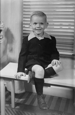 Description :PHOTO CABINET MONTRANT L'ENFANT ASSIS SUR UN BANC.