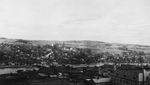 Description :VUE AERIENNE DE SHERBROOKE-EST AVEC, A L'AVANT-PLAN, L'EVECHE, PUIS LE CENTRE-VILLE, LE PONT AYLMER ET LA RIVIERE ST-FRANCOIS.