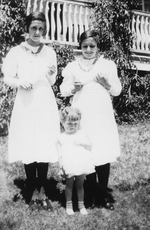 Description :24.1 DEUX ADOLESCENTES ET UNE ENFANT SUR UNE PELOUSE. 24.2 LA MEME ENFANT AVEC SA GRAND-MERE (?) (UNE TANTE D'ALMA) DEVANT CE QUI SEMBLE ETRE UN ELEVAGE D'ESCARGOTS. 24.3 MEME ADOLESCENTES AVEC LA GRAND-MERE, EN MANTEAUX ET CHAPEAUX, DEVANT...