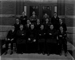 Description :FINISSANTS DE LA CLASSE DE RHETORIQUE POSANT POUR UNE PHOTO DE GROUPE. DE GAUCHE A DROITE : PREMIERE RANGEE : DUMONT, ROMUALD; ST-LAURENT, ABBE LEONARD; SIDELEAU, ABBE ARTHUR; CAIN, ABBE STEWART; MORIN, ABBE HERMAN; DEUXIEME RANGEE : BISSON, J...