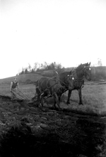 Description :UN HOMME LABOURE SA TERRE AVEC SES DEUX CHEVAUX. IL S'AGIRAIT DE M. ARMAND VIGNEUX DANS LA RANG 7 (LE NOM EST DONNE SOUS TOUTE RESERVE)