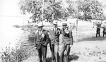 Description :ARTHUR ET DEUX AMIS DEBOUT AU BORD DU LAC. ARTHUR EST AU CENTRE.