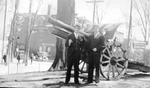 Description :ARTHUR ET UN AMI DEBOUT DANS UN PARC, DERRIERE UN CANON. ARTHUR EST A GAUCHE.