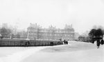 Description :VUE TRES POETIQUE DU PARC. L'ETANG OCCUPE UNE GRANDE PARTIE DE LA PHOTO. TROIS PERSONNAGES EN COSTUME D'EPOQUE ET QUELQUES BADAUDS.