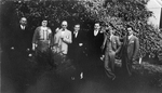 Description :38.1 ARTHUR OLIVIER, SIX AUTRES PARENTS ET AMIS DEVANT DES FEUILLUS. 38.2 ARTHUR OLIVIER ET QUATRE AMIS A L'EXTERIEUR DEVANT UNE GALERIE COUVERTE DE VIGNES VIERGES