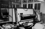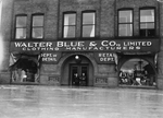 Description :VUE DE L'INONDATION EN FACE DE LA MANUFACTURE WALTER BLUE & CO., LIMITED. ON VOIT DEUX HOMMES DEBOUT DANS LA PORTE D'ENTREE ET DES EMPLOYES INSTALLES DANS LA VITRINE.