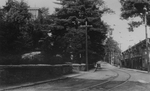 Description :VUE SUR UNE RUE OU IL Y A DES RAILS DE TRAMWAY AU CENTRE. A DROITE, ON VOIT LA RESIDENCE CONNAUGHT ET A GAUCHE, LE TOIT DE LA RESIDENCE DE HENRY ROBERT BECKETT.