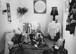 Description :DES PIECES D'ARTISANS ET TRAVAILLEURS TEL QUE CROCHET ET DENTELLE S'OFFRENT A NOS YEUX. CERTAINES SONT ETALEES A MEME LE SOL, D'AUTRES SONT INSTALLEES SUR DE PETITS MEUBLES OU FIXEES AUX MURS.