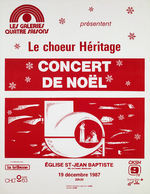 Notes :AFFICHES DU CONCERT DE NOEL PRESENTE PAR LE CHOEUR HERITAGE A L'EGLISE ST-JEAN-BAPTISTE (SHERBROOKE) LE 19 DECEMBRE 1987.