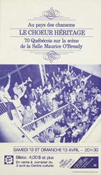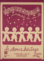 Notes :AFFICHE DU 13E CONCERT ANNUEL PRESENTE PAR LE CHOEUR HERITAGE A LA SALLE MAURICE O'BREADY DE L'UNIVERSITE DE SHERBROOKE (7 AVRIL 1984).