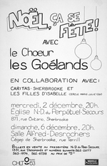 Notes :CETTE AFFICHE NE CONCERNE PAS LE CHOEUR HERITAGE, MAIS PROVIENT DU DONATEUR DU FONDS CHOEUR HERITAGE. LE CHOEUR LES GOELANDS A LE MEME GENRE DE REPERTOIRE QUE LE CHOEUR HERITAGE. CONCERT PRESENTE AN COLLABORATION AVEC CARITAS-SHERBROOKE ET LE...