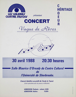 Notes :AFFICHE DU 17E CONCERT ANNUEL PRESENTE PAR LE CHOEUR HERITAGE A LA SALLE MAURICE O'BREADY DE L'UNIVERSITE DE SHERBROOKE (30 AVRIL 1988). CONCERT BENEFICE AU PROFIT DE L'ECOLE LE TOURET (ECOLE POUR JEUNE EN DIFFICULTES)