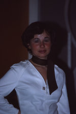 Description :GROS PLAN SUR LOUISE POITRAS (UNE DES CHORISTES DU CHOEUR). PHOTO PRISE APRES UN CONCERT, DANS LES COULISSES DE LA SALLE MAURICE O'BREADY. LA CHORISTE PORTE SON COSTUME DE SCENE.