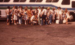 Description :1.1 MEMBRES DU CHOEUR, AVANT LEUR DEPART, DEVANT L'AUTOBUS. PHOTO PRISE AU TERMINUS D'AUTOBUS DE SHERBROOKE. 1.2 MARC BERNIER, DEBOUT A L'AVANT DE L'AUTOBUS EN MARCHE, DIRIGE LES CHORISTES (ASSIS, DE DOS) QUI REPETENT LEUR TOUR DE CHANT.