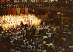 Description :VUES D'ENSEMBLE ET PARTIELLES D'UN CHOEUR DE 250 VOIX (CHORISTE PROVENANT DE DIVERSES CHORALES MEMBRES DE L'ACQ), DES MUSICIENS (ENTRE 20 ET 30) ET DES SPECTATEURS (PLANCHER ET BALCON). MARC BERNIER DIRIGE LE CONCERT.