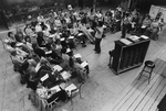 Description :VUES D'ENSEMBLE ET PARTIELLES DU CHOEUR HERITAGE AU COURS D'UNE REPETITION A LA PETITE SALLE DE L'UNIVERSITE DE SHERBROOKE, A SON RETOUR DES CHORALIES INTERNATIONALES. CHORISTES ASSIS EN DEMI-CERCLE. MARC BERNIER, DEBOUT (19.1), DE DOS ET EN ...