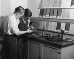 Sujet principal :GERARD LEMIEUX ET GILBERT DUFORT DANS LE LABORATOIRE DE CONTROLE DE LA QUALITE A LA PATON