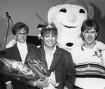Description :DE GAUCHE A DROITE: LAURENCE TARDIF, SONIA LABRIE, DANIEL BLOUIN. A L'ARRIERE, LE BONHOMME CARNAVAL.