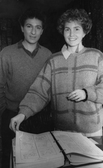 Description :UN HOMME ET UNE FEMME SONT DEBOUT. LA FEMME TOURNE LA PAGE D'UN LIVRE POSE SUR LA TABLE DEVANT EUX.