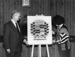 Description :DE GAUCHE A DROITE: JEAN CHAREST, RENEE GIROUX, JIM CORCORAN, MGR. GEORGES CLOUTIER