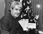 Description :UN HOMME TIENT EN MAIN QUATRE BILLETS DE LOTO 6/49 ET UN CHEQUE DE LOTO QUEBEC. DERRIERE LUI, IL Y A UN ARBRE DE NOEL.