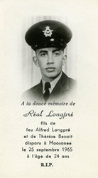 Description :PORTRAIT DE REAL LONGPRE FILS DE ALFRED LONGPRE ET THERESE BENOIT DISPARU A MOOSONIE LE 25 SEPTEMBRE 1965