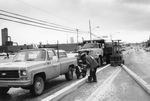 Description :AUTOMOBILES DEGAGEANT DE LA FUMEE, PIETONS ET COMMERCES, RUE WELLINGTON SUD. VUE PARTIELLE DU RESTAURANT A ET W ET DE LA FERRONNERIE WELLINGTON, EN ARRIERE-PLAN.