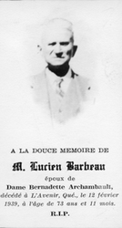 Description :LUCIEN BARBEAU, DECEDE A L'AVENIR A L'AGE DE 73 ANS ET 11 MOIS