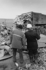 Description :DEUX HOMMES VUS DE DOS SONT DANS UN DEPOTOIR.