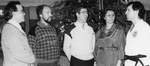 Description :UN HOMME EN KIMONO EST DEBOUT ET TROIS HOMMES ET UNE FEMME LE REGARDENT.