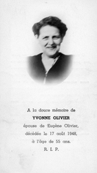 Description :PORTRAIT DE YVONNE OLIVIER EPOUSE DE EUGENE OLIVIER ET DECEDE LE 17 AOUT 1948 A L'AGE DE 55 ANS