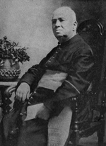 Description :PORTRAIT DU CHANOINE DENIS BELLEMARE VERS L'AGE DE 75 ANS, ASSIS.