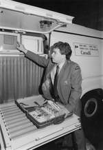 Sujet principal :L'INSPECTEUR GABY DUTEAU MONTRE LA FOURGONNETTE DE DETECTION PAR RAYONS-X.