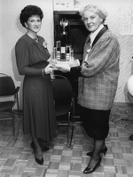 Description :A GAUCHE: GERTRUDE GUAY-VERONNEAU PRENANT LE TROPHEE QUI LUI EST OFFERT DES MAINS DE LA DEPUTE DE ST-FRANCOIS, MME MONIQUE GAGNON-TREMBLAY.