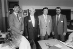 Description :DE GAUCHE A DROITE: JACQUES BLOUIN, DIRECTEUR DE CENTRE DE MAIN-D'OEUVRE DE SHERBROOKE,MARGARET PAULETTE, PRESIDENTE DE LA COMMISSION SCOLAIRE, GUY BELLAVANCE DU CENTRE DE FORMATION PROFESSIONNELLE ET DOUGLAS GRANT, DIRECTEUR DU SERVICE DE L'E...