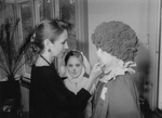 Sujet principal :DEUX ENFANTS SE FAISANT MAQUILLER PAR MME CAROLE LAWRENCE.